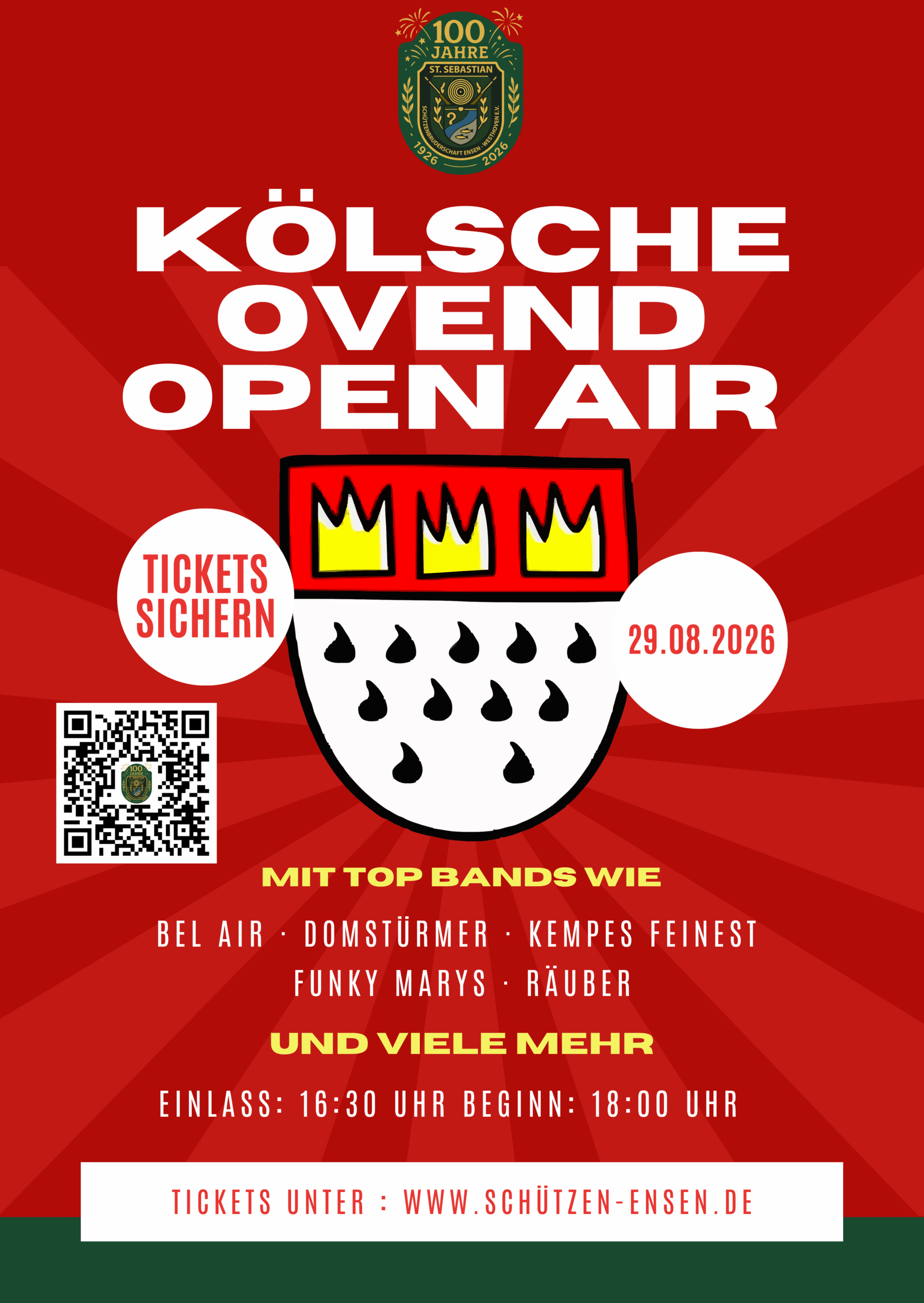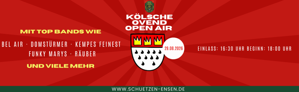 Anlässlich unseres 100-jährigen Jubiläums findet der „Kölsche Ovend Open Air” am 29.08.2026 statt.🪩